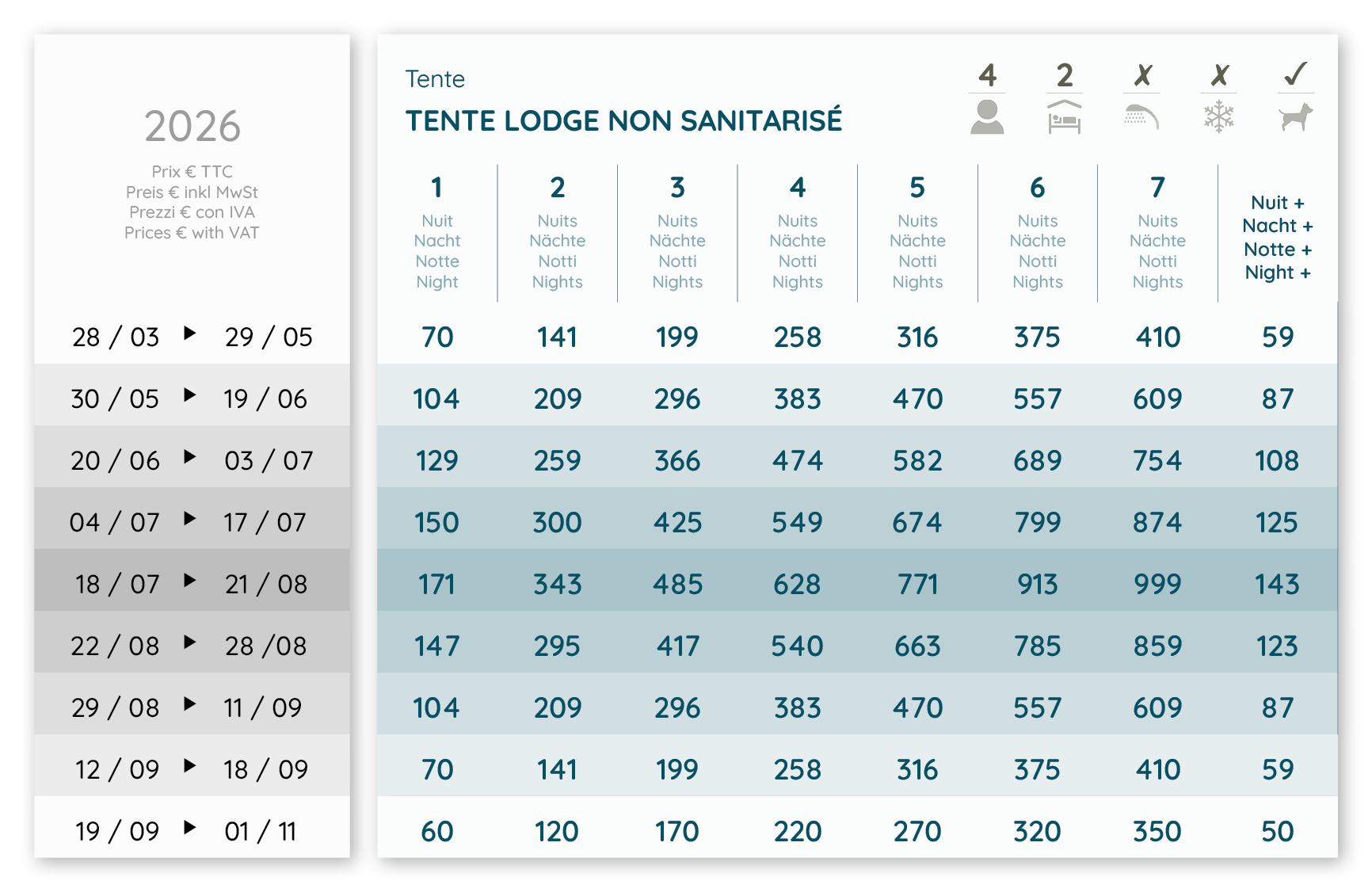 Tente Lodge non sanitarisée et non climatisée :